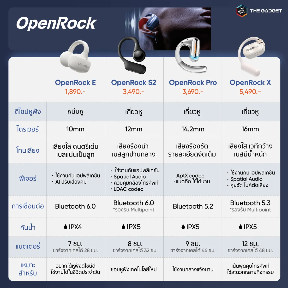 OpenRock หูฟังทรง Open-Ear เสียงดี เสียงกว้าง รายละเอียดครบ ไม่ต้องปิดหู ก็ได้ยินทุกมิติของเสียง และดีไซน์ที่เท่และใส่สบายทั้งวัน พร้อมไมค์ตัดเสียงรบกวน