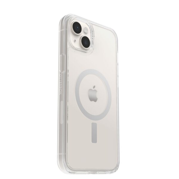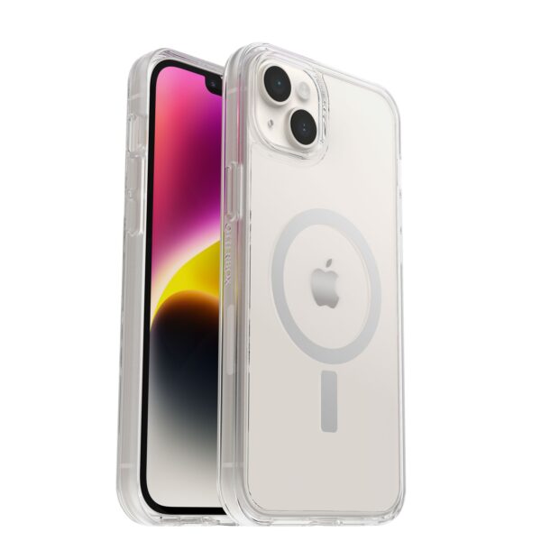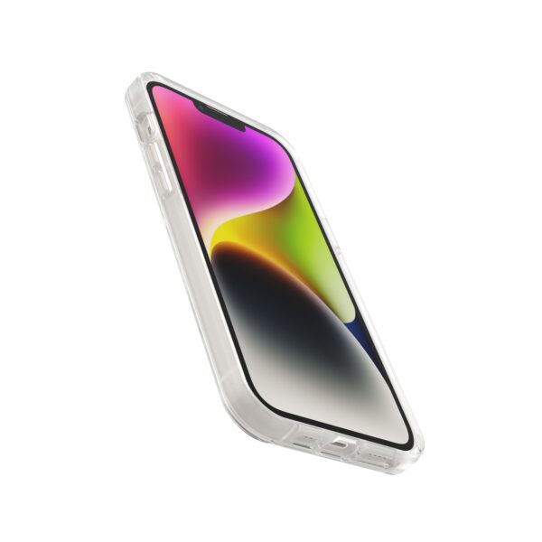 เคสใสกันกระแทกเน้นโชว์สีตัวเครื่องรูปทรงเพรียวบาง มาพร้อมกับ Built-In Magsafe ภายในตัว ผลิตจากวัสดุ Polycarbonate พลาสติกแข็งแรงทนทาน และSynthetic rubber ยางที่อ่อนนุ่มดูดซับแรงกระแทกได้ดี ปกป้องสมาร์ทโฟนได้เป็นอย่างดี มีการเคลือบสารป้องกันแบคทีเรียที่บริเวณผิวของเคส และผ่านมาตรฐาน OtterBox Certified Drop Protection มาพร้อมขอบเคสยกสูงช่วยปกป้องเลนส์กล้องและรอบหน้าจอปกป้องสมาร์ทโฟนได้ถึง 360 องศา รองรับการชาร์จแบบไร้สายและใช้งาน MagSafe ได้เป็นอย่างดี