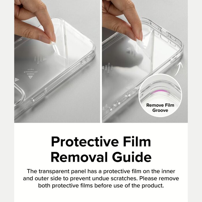 • ข้อแนะนำ: มีแผ่นฟิล์มใสอยู่ด้านในและด้านนอกของเคส ควรลอกแผ่นฟิล์มออกก่อนใส่เครื่องเข้าไปเพื่อใช้งาน