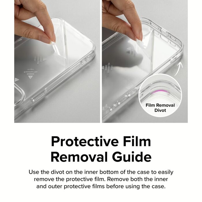 - ข้อแนะนำ: มีแผ่นฟิล์มใสอยู่ด้านในและด้านนอกของเคส ควรลอกแผ่นฟิล์มออกก่อนใส่เครื่องเข้าไปเพื่อใช้งาน