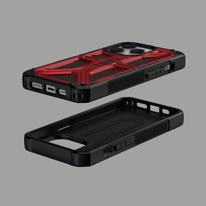 - ภายในเคสออกแบบให้มีลายหกเหลี่ยม เป็นเทคโนโลยี HyperCush เอกสิทธิ์เฉพาะของ UAG ที่ช่วยกระจากแรงกระแทกเมื่อตกกระแทกพื้น