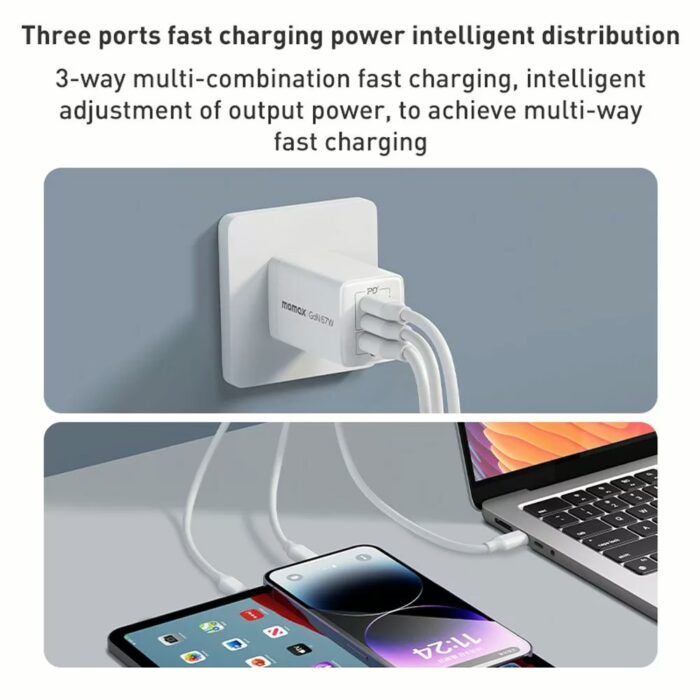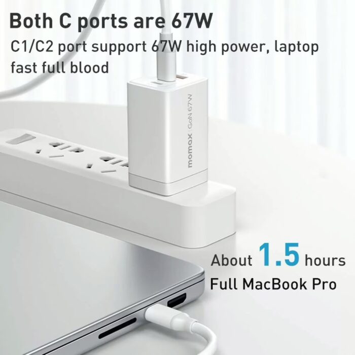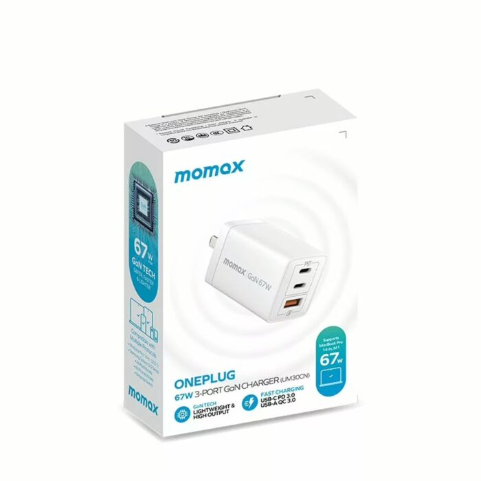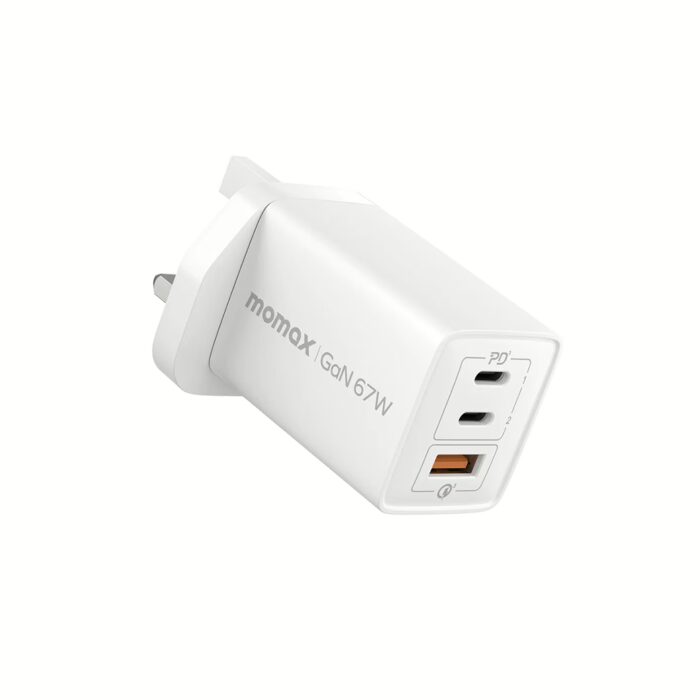 Momax หัวชาร์จ รุ่น ONE Plug อแดปเตอร์ GaN 3 พอร์ต Type-C + USB Fast Charge 10A 67W – สี White