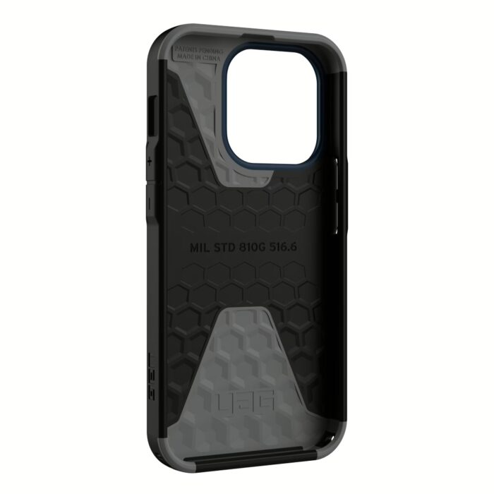 • ภายในเคสออกแบบให้มีลายหกเหลี่ยม เป็นเทคโนโลยี HyperCush เอกสิทธิ์เฉพาะของ UAG ที่ช่วยกระจากแรงกระแทกเมื่อตกกระแทกพื้น