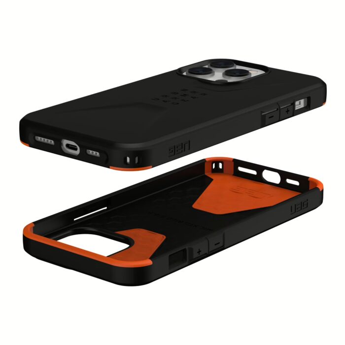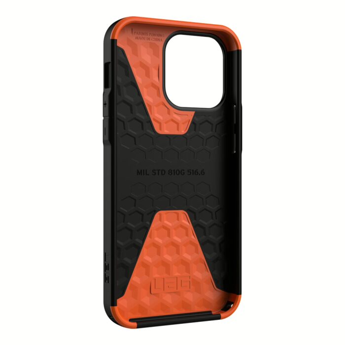 - ภายในเคสออกแบบให้มีลายหกเหลี่ยม เป็นเทคโนโลยี HyperCush เอกสิทธิ์เฉพาะของ UAG ที่ช่วยกระจากแรงกระแทกเมื่อตกกระแทกพื้น