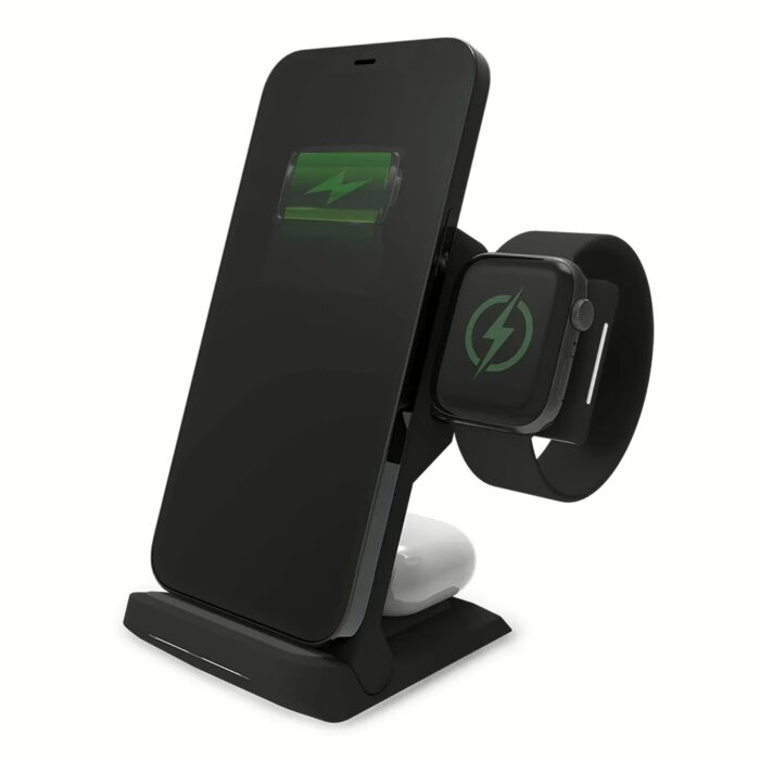 • แท่นชาร์จไร้สายแบบ 3in1 ชาร์จพร้อมกันได้ทั้ง iPhone, AirPods และ Apple Watch