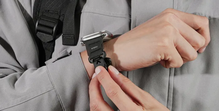 - บัคเคิลแบบ Fidlock magnetic quick-release ที่ใช้แม่เหล็กช่วยล็อกสายเมื่อติดตั้ง และคลายล็อกเมื่อกด และสามารถถอดสายได้โดยไม่ต้องเสียบ-ดึงแบบสายปกติ