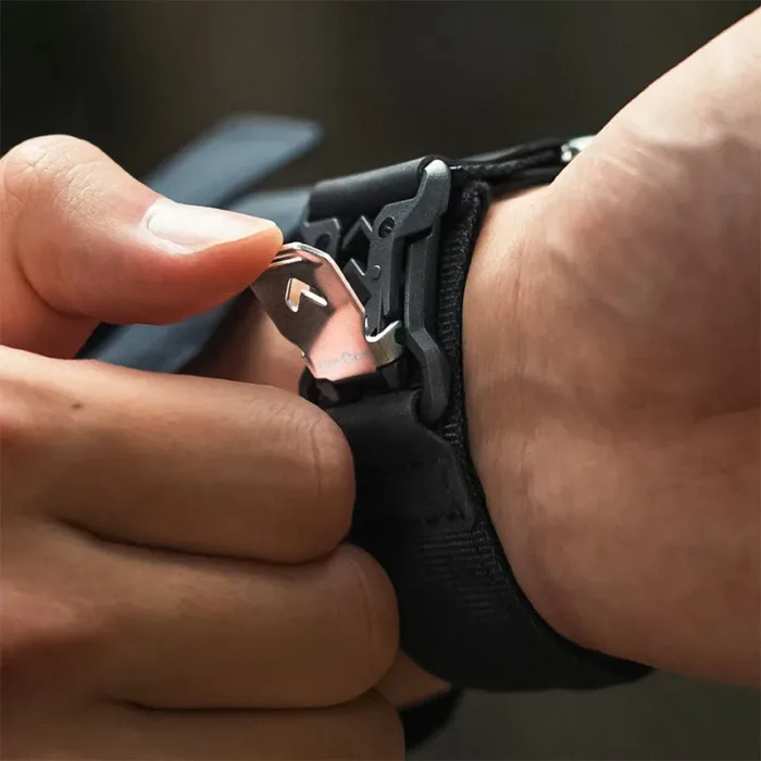 - บัคเคิลแบบ Fidlock magnetic quick-release ที่ใช้แม่เหล็กช่วยล็อกสายเมื่อติดตั้ง และคลายล็อกเมื่อกด และสามารถถอดสายได้โดยไม่ต้องเสียบ-ดึงแบบสายปกติ