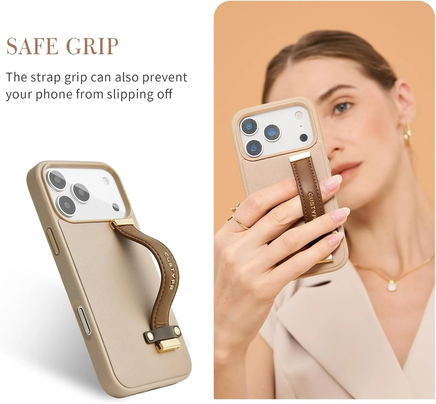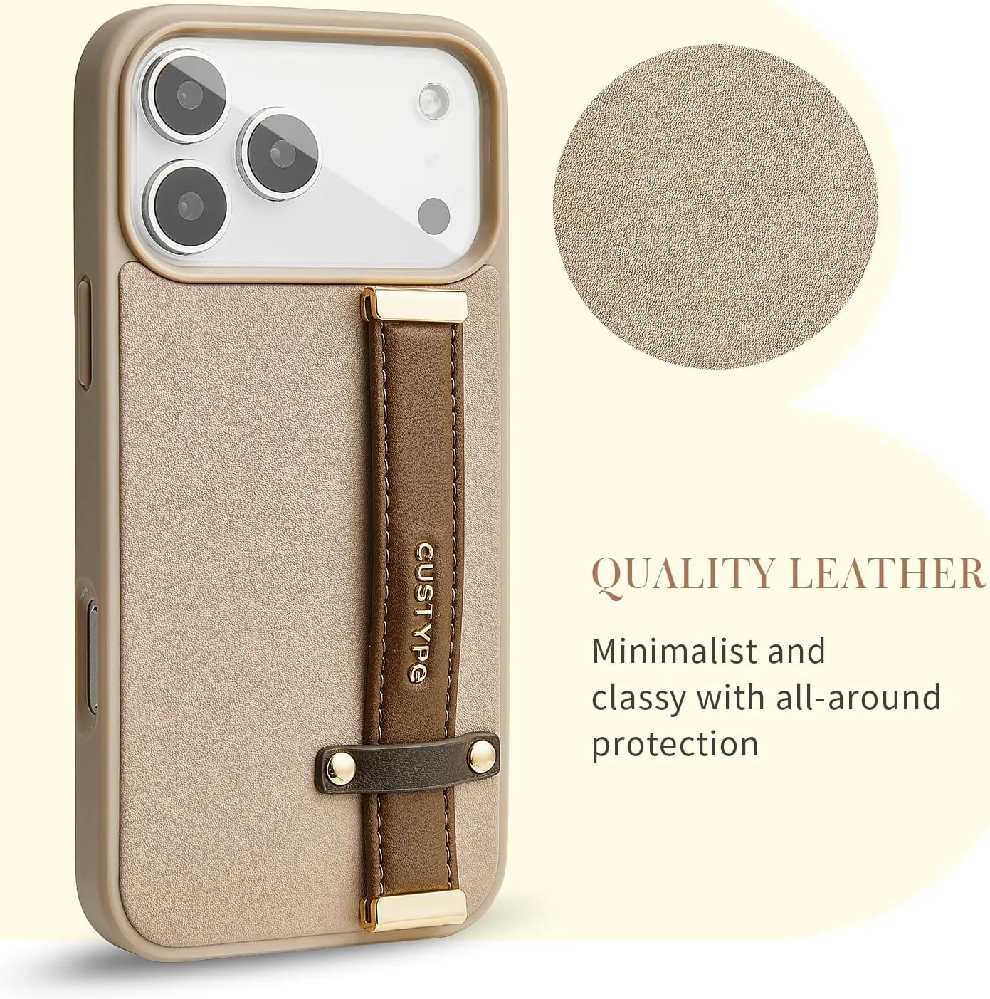 Custype รุ่น Faux Leather Case with Wrist Stand – เคส iPhone 17 Pro – สี Brown