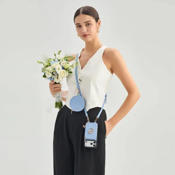 Custype รุ่น Leather Case with Stand and Round Pouch เคสหนัง Microfiber Leather พร้อม Wallet ที่เป็นขาตั้งที่มาพร้อมสาย Crossbody และกระเป๋าพกพา Round Pouch ใบเล็กรูปทรงกลม สุดหรู ที่เป็นอุปกรณ์ติดเข้ากับ MagSafe หรือคล้องกับสายสะพายได้อย่าลงตัว ซึ่งทั้งหมดในเซ็ทสามารถใช้ร่วมกันจะให้ความหรูหราในวัสดุและดีไซน์ที่มีลวดลายของหนังที่ หรู ดูแพง ที่ยังคงความหวานสไตล์สาวๆ ตัวเคสยังรองรับการกันกระแทกด้วยขอบ TPU ที่ช่วยรับแรงกระแทกเป็นอย่างดี และมี MagSafe ที่สามารถใช้ร่วมกับอุปกรณ์อื่นได้และรองรับระบบการชาร์จแบบไร้สาย (Wireless Charging Compatible)