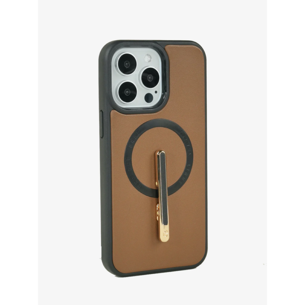 Custype รุ่น Magnetic Wireless Charging Phone Case With Single Pole Stand – เคส iPhone 15 Pro – สี Brown