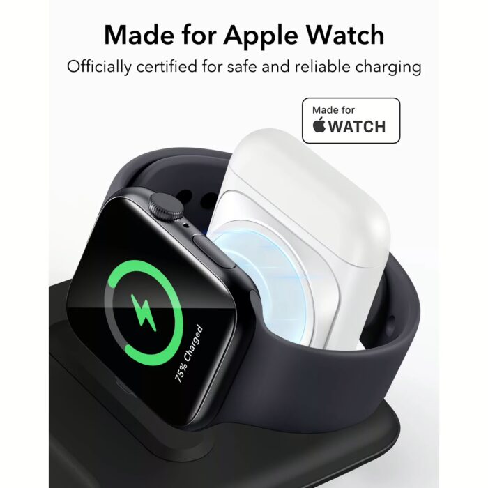 - ชุดอุปกรณ์ชาร์จไร้สายที่ครบจบในชุดเดียวแบบ 3-in-1 สามารถชาร์จ iPhone, Apple Watch และ AirPods ได้พร้อมกัน ช่วยประหยัดเวลาและเพิ่มความสะดวกสบาย