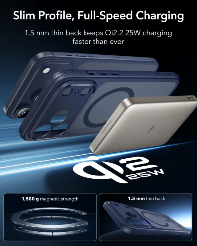 - รองรับการชาร์จมาตรฐานใหม่ Qi2.2 Fast Charge ให้กำลังชาร์จสูงสุดถึง 25W ใช้งานร่วมกับแท่นชาร์จรุ่นล่าสุดได้เต็มประสิทธิภาพ