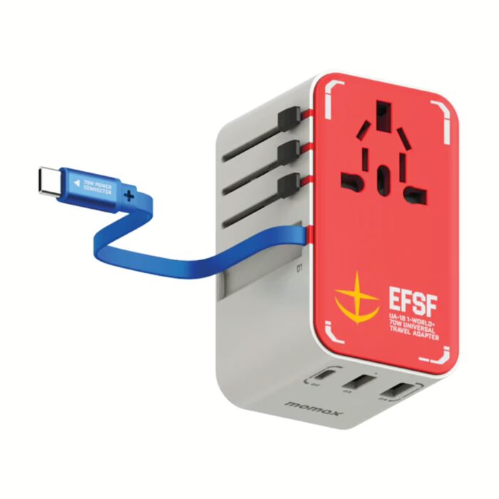 - 1-World+ 3-Port Travel GaN Charger With Built-in USB-C Cable 70W