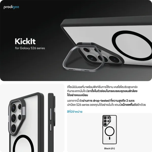 Prodigee รุ่น Kick It – เคส Galaxy S26 Ultra – สี Black