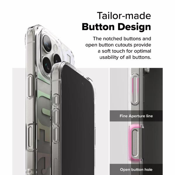 เคส Ringke รุ่น Fusion Design ปกป้อง iPhone ของคุณด้วยเคสไฮบริดสีใสสไตล์มินิมอลที่มีลวดลายเป็นเอกลักษณ์ ตัวเคสทำจากวัสดุ TPU + PC การออกแบบที่บางและน้ำหนักเบา แต่ยังช่วยดูดซับแรงกระแทก มาพร้อมการปกป้องและประสิทธิภาพในการกันกระแทกระดับ MIL-STD-810G 516.6 มาพร้อมกับรูคล้อง Duo-QuikCatch สำหรับใช้กับอุปกรณ์เสริม เช่น เชือกคล้องข้อมือ, ที่ห้อยโทรศัพท์สำหรับคล้องสาย รองรับระบบการชาร์จแบบไร้สาย (Wireless Charging Compatible)