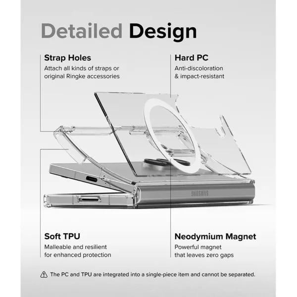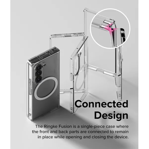 - Connected Design ในส่วนข้อต่อของเคสบริเวณฝาพับจะเชื่อมติดกันไม่ได้แยกเป็น 2 ชิ้นเพื่อความกระชับเวลาใส่