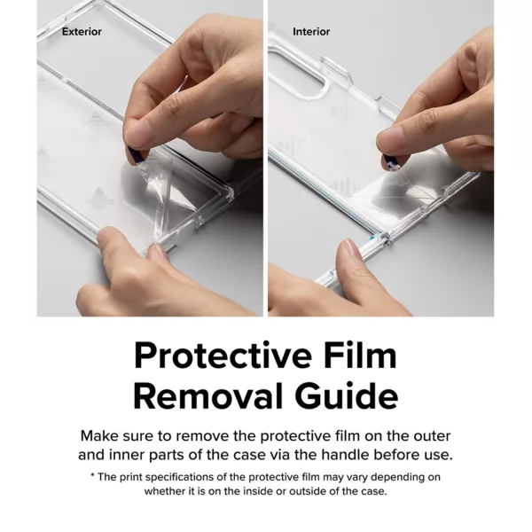 - ข้อแนะนำ: มีแผ่นฟิล์มใสอยู่ด้านในและด้านนอกของเคส ควรลอกแผ่นฟิล์มออกก่อนใส่เครื่องเข้าไปเพื่อใช้งาน