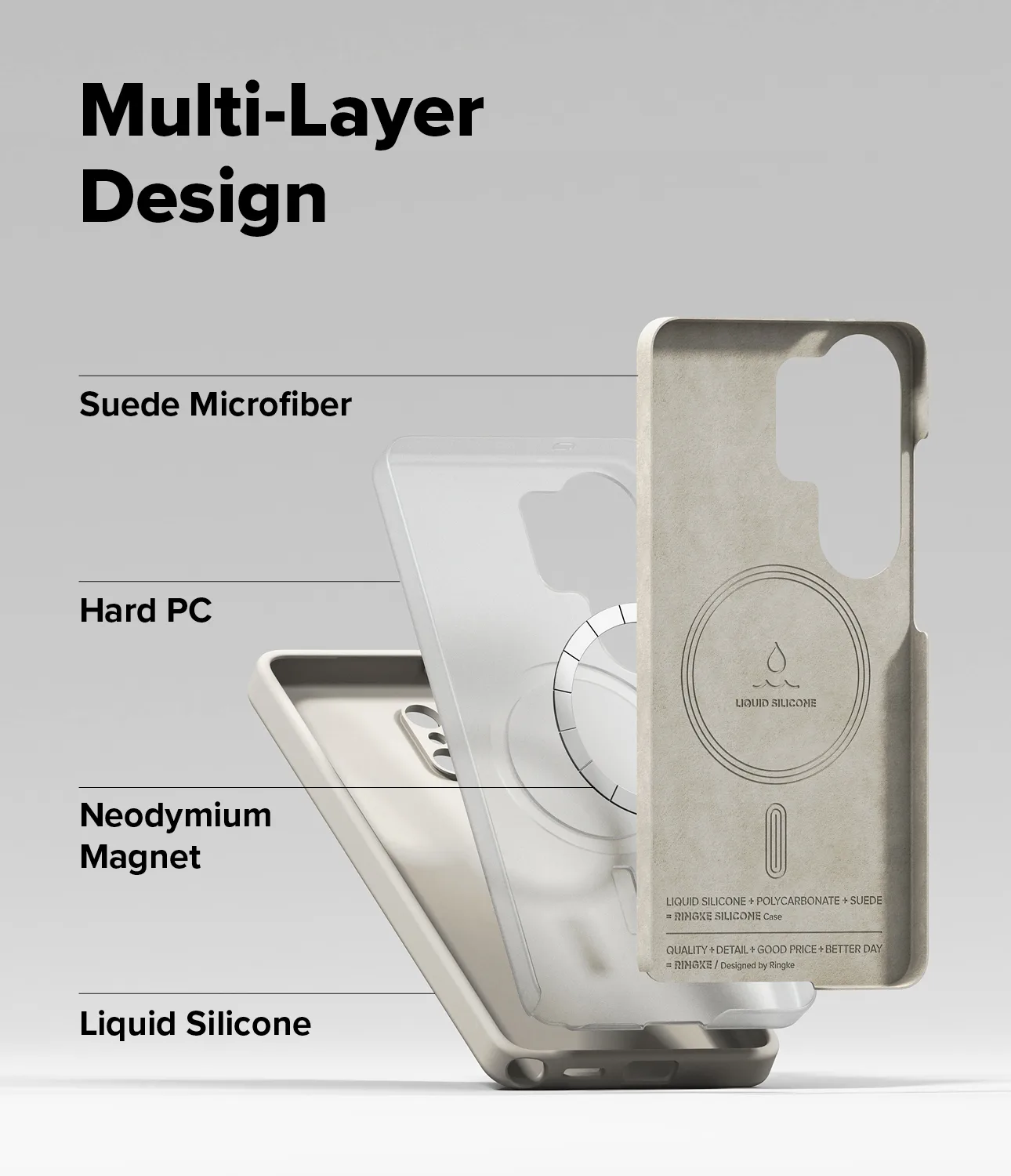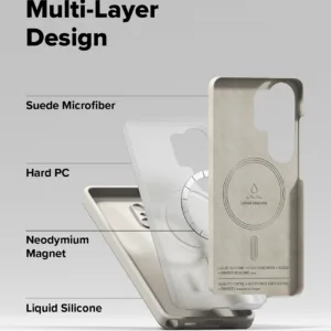 Ringke Silicone Magnetic ผลิตจาก ซิลิโคนคุณภาพสูง เคลือบผิว Matte ให้สัมผัสนุ่ม กระชับมือ และไม่จับรอยนิ้วมือ ด้านในบุด้วย ไมโครไฟเบอร์ซูเอด ปกป้องตัวเครื่องจากรอยขีดข่วน โครงสร้างสี่ชั้นเสริมด้วยกรอบ Polycarbonate แข็งแรง ผ่านมาตรฐานกันกระแทก MIL-STD-810G พร้อมขอบยกสูงรอบกล้องและหน้าจอ เคสยังฝังแม่เหล็ก Magnetic ใช้งานชาร์จและอุปกรณ์เสริมได้มั่นใจ และช่องคล้องสายที่รองรับได้ถึงสองเส้นเพื่อเพิ่มความสะดวกทุกการใช้งาน