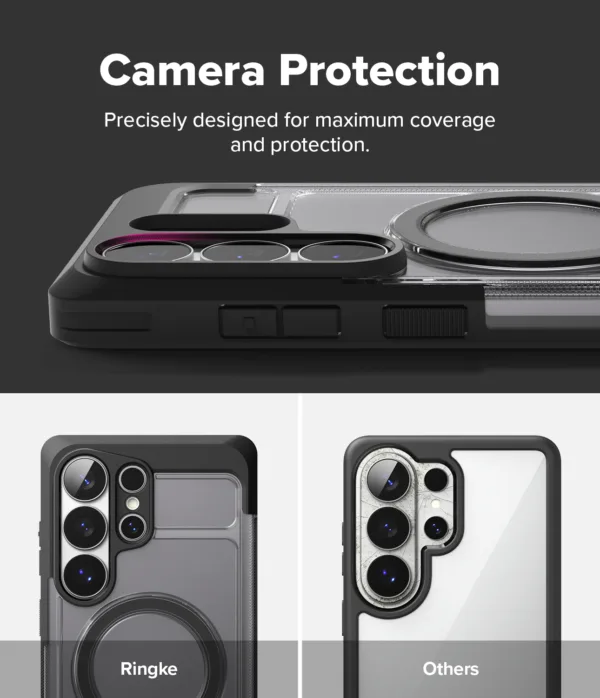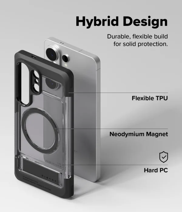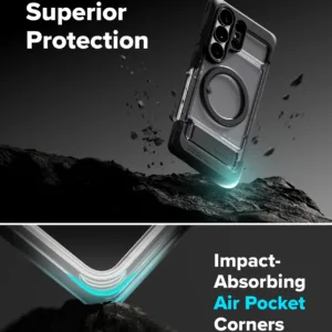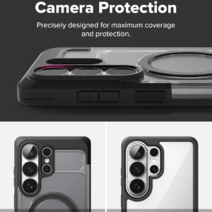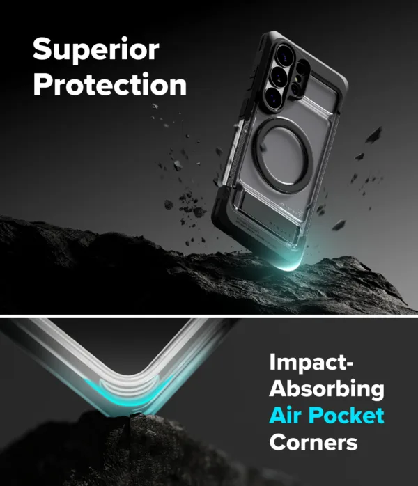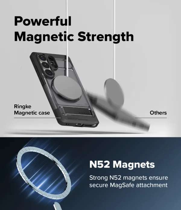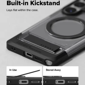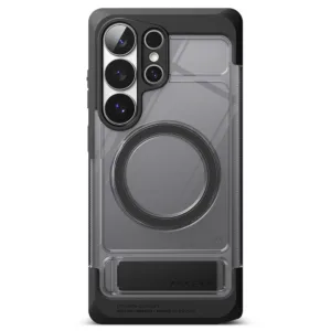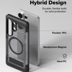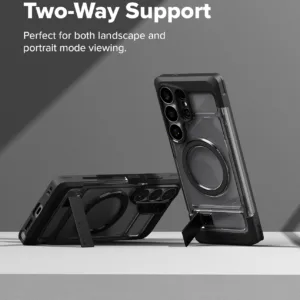 Ringke UX Magnetic เป็นเคสสำหรับ Samsung Galaxy S26 Ultra ที่ทำจากโครง PC และ TPU แบบ Dual-Layer พร้อมวงแม่เหล็ก N52 Magnet ในตัวเพื่อรองรับการติดกับอุปกรณ์แม่เหล็กและชาร์จไร้สายได้แน่นกว่า เคสกันรอยระดับพื้นฐานและยังมี ขาตั้งในตัว ซึ่งช่วยเลยให้การดูหนังหรือประชุมออนไลน์ในแนวนอนสะดวกจริงเมื่อเทียบกับเคสบางทั่วไป