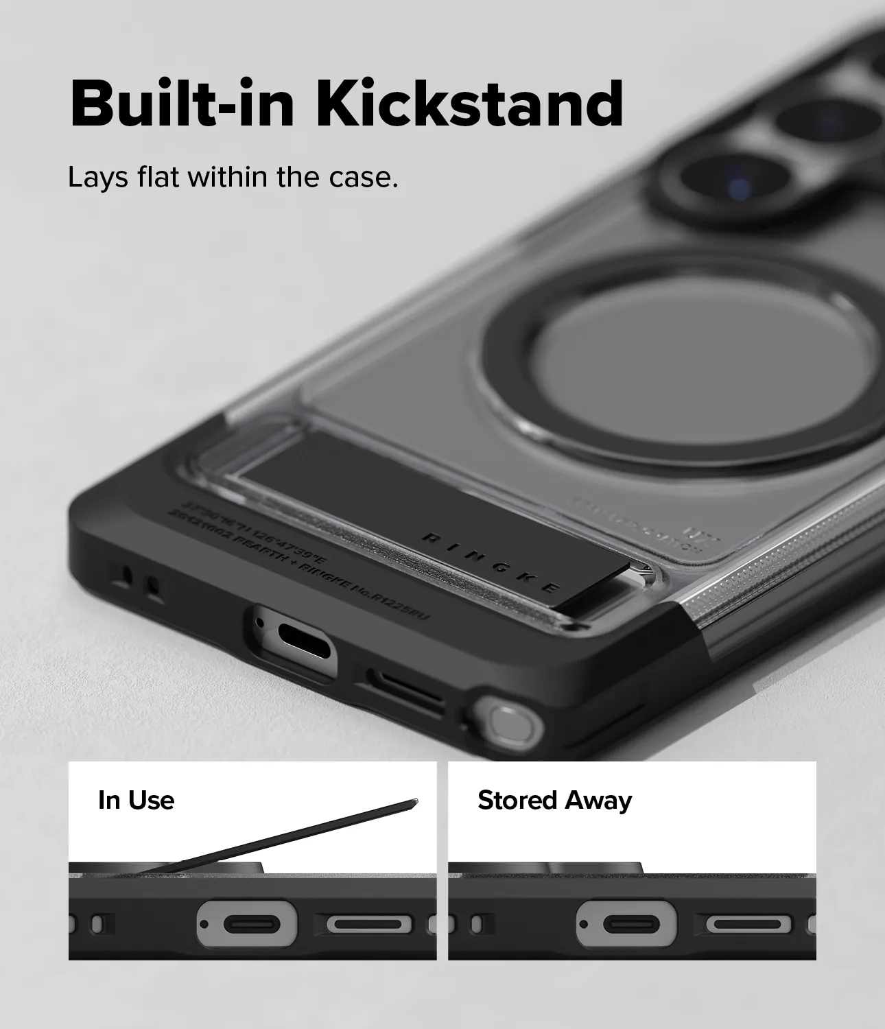 • ดีไซน์ขาตั้งที่ออกแบบสไตล์พับซ่อนไว้อย่างพอดีเพื่อไม่เพิ่มความหนาของตัวเคส