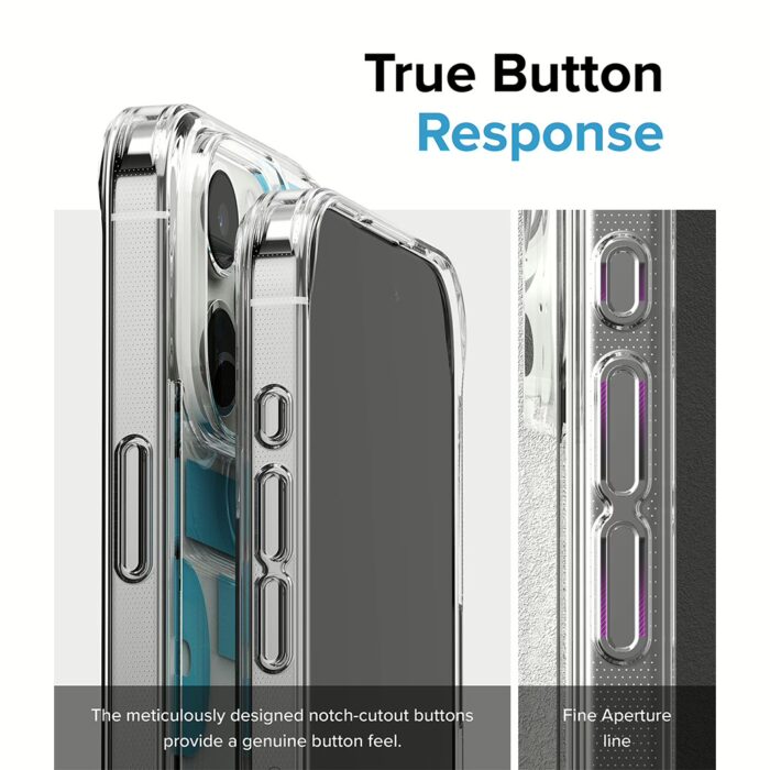 เคส Ringke รุ่น Fusion Design ปกป้อง iPhone 15 ของคุณด้วยเคสไฮบริดสีใสสไตล์มินิมอลที่มีลวดลายเป็นเอกลักษณ์ ตัวเคสทำจากวัสดุ TPU + PC การออกแบบที่บางและน้ำหนักเบา แต่ยังช่วยดูดซับแรงกระแทก มาพร้อมการปกป้องและประสิทธิภาพในการกันกระแทกระดับ MIL-STD-810G 516.6 มาพร้อมกับรูคล้อง Duo-QuikCatch สำหรับใช้กับอุปกรณ์เสริม เช่น เชือกคล้องข้อมือ, ที่ห้อยโทรศัพท์สำหรับคล้องสาย รองรับระบบการชาร์จแบบไร้สาย (Wireless Charging Compatible)