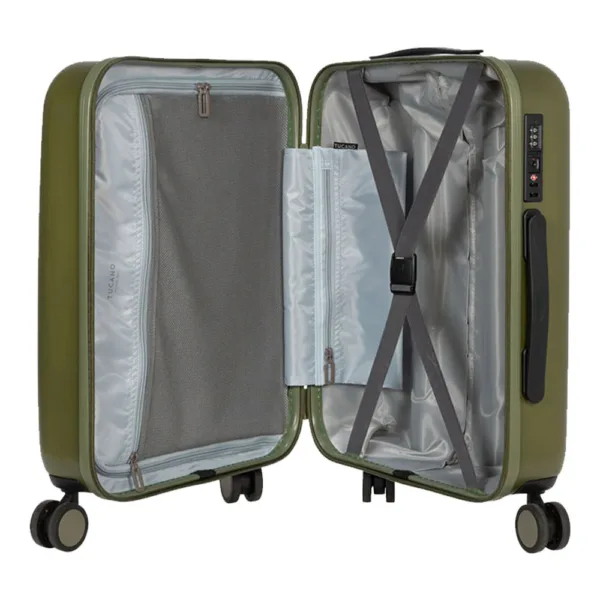TUCANO TED เป็นกระเป๋าเดินทางทรงแข็งที่ออกแบบมาเพื่อการใช้งานจริง เน้นความทนและความคล่องตัวเป็นหลัก ตัวกระเป๋าใช้วัสดุ Polycarbonate น้ำหนักเบาแต่แข็งแรง เหมาะกับการ Carry-on ขึ้นเครื่องได้เลย มาพร้อมระบบ TSA Lock ล้อ 4 ล้อหมุนรอบทิศทาง ภายในแบ่งฝั่งชัดเจน ใช้งานง่าย เหมาะกับคนที่อยากได้กระเป๋าเรียบ เท่ และพร้อมลุยทุกทริปโดยไม่ต้องพึ่งฟีเจอร์หวือหวา