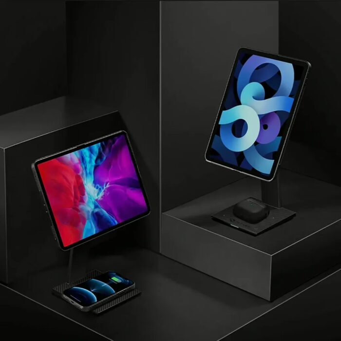 - Pitaka MagEZ Stand เป็นขาตั้งให้ iPad หรือ Tablet ในการใช้บนโต๊ะ สำหรับทำงาน ดูหนัง หรือ เล่นเกม ทำให้ได้มุมมองในระดับสายตาที่เหมาะสม
