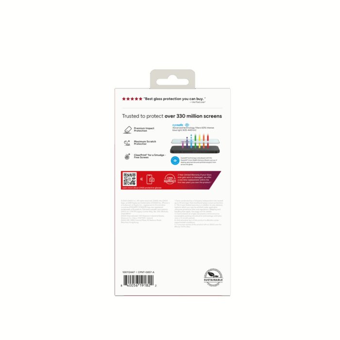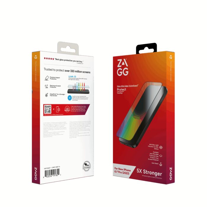 ZAGG รุ่น Glass Plus Vision Guard – ฟิล์มกระจก iPhone 15 Pro – สี Clear