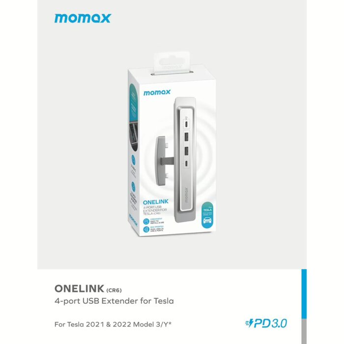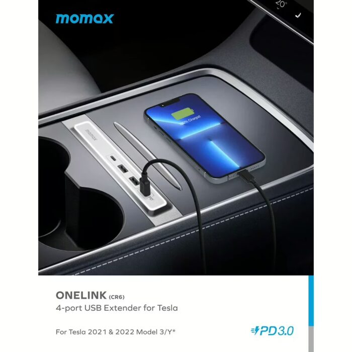 อุปกรณ์เชื่อมต่อในรถ Tesla (2021-2022 Model 3) Momax รุ่น Onelink 4 Port USB – สีเงิน