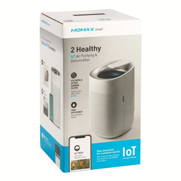เครื่องฟอกอากาศและลดความชื้น Momax รุ่น IoT 2Healthy – สีขาว