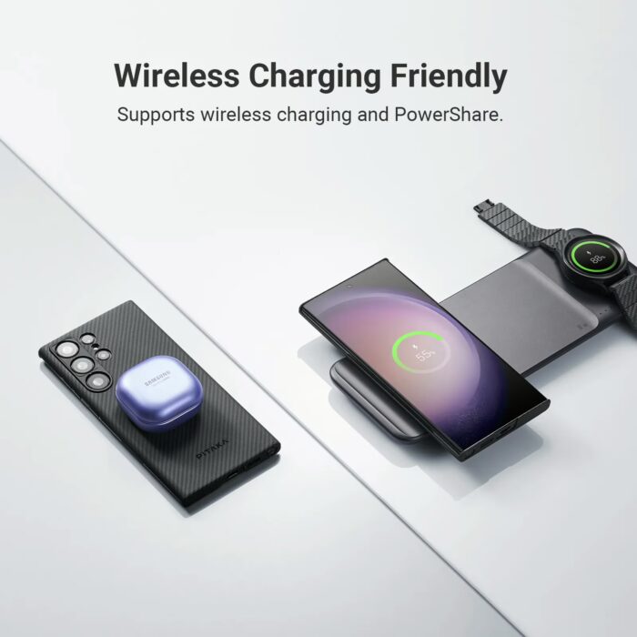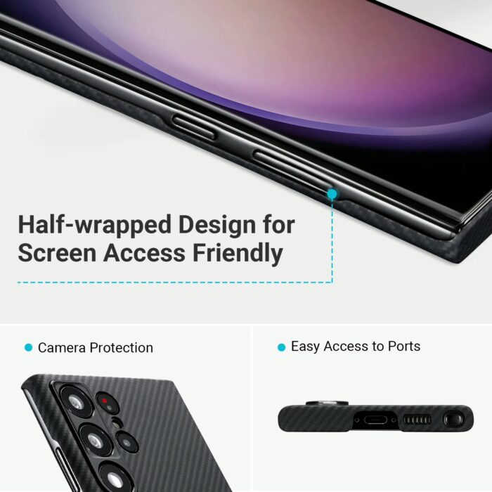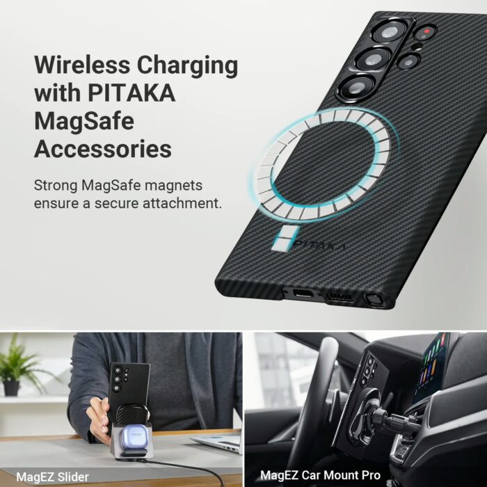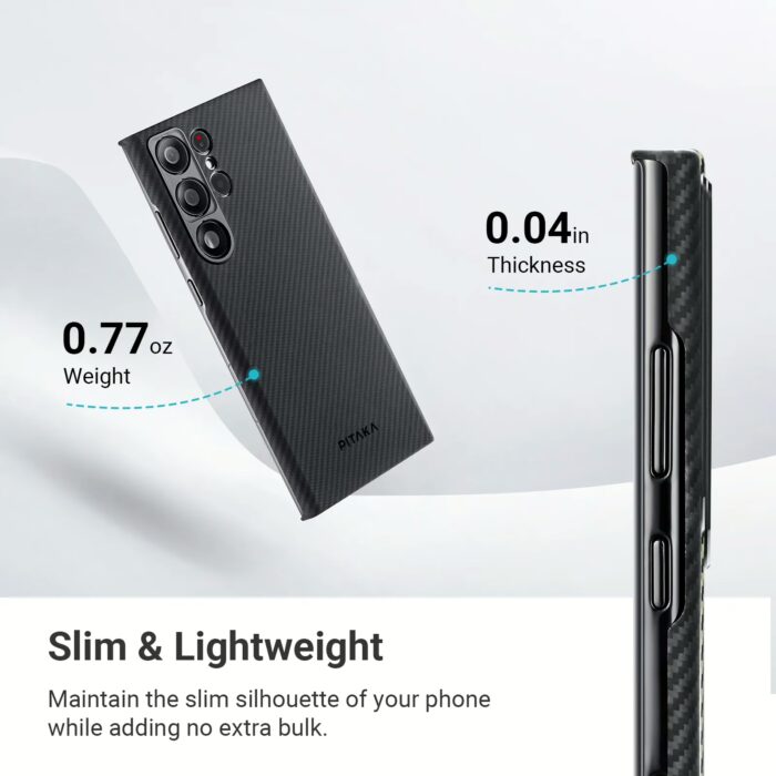 เคสพร้อม Magsafe ที่บางเบาที่สุด Galaxy S23 Ultra  บางเพียง 0.95 มม. แม้จะมีแม่เหล็กฝังอยู่ก็ตาม ป้องกันรอยขีดข่วนด้วยวัสดุ Aramid Fiber 600D เกรดที่ใช้กับอวกาศ เบาแต่แข็งแรงกว่าเหล็กกล้า ผ่านกระบวนการมากกว่า 40 กระบวนการ ทำให้ได้เคส Galaxy S23 ที่บางเฉียบและสวยงามนี้ พร้อมให้ผิวสัมผัสที่ดีเยี่ยม