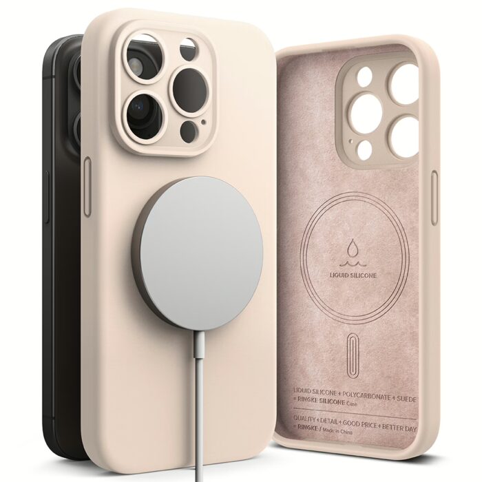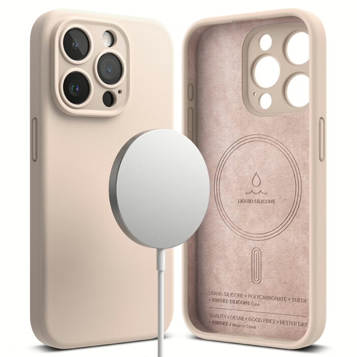 Ringke รุ่น Silicone Magnetic – เคส iPhone 15 Pro Max – สี Pink Sand