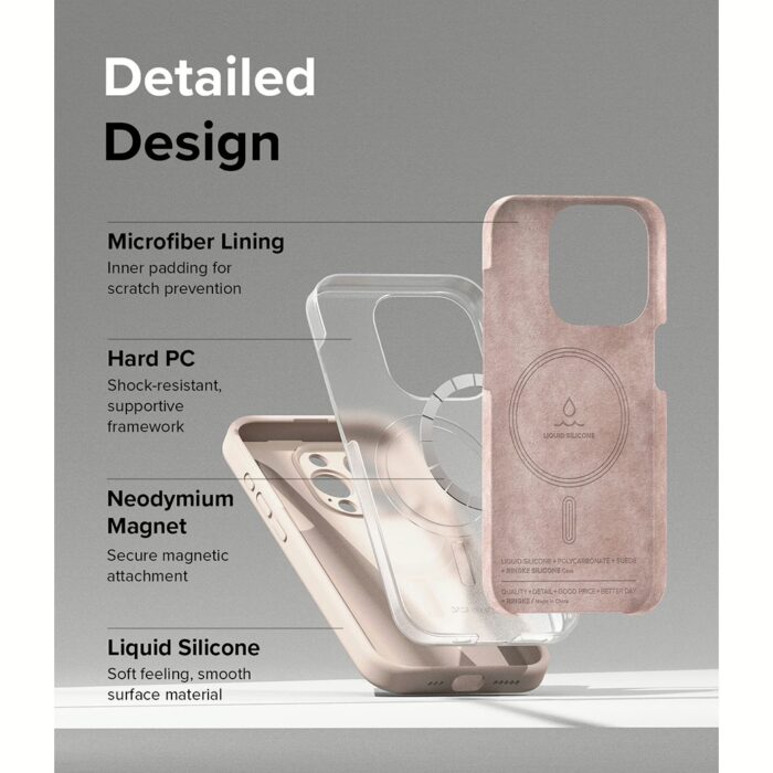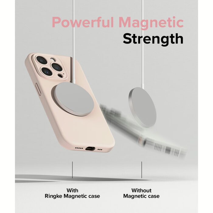 เคส Ringke รุ่น Silicone Magnetic เคสซิลิโคนคุณภาพสูง กันฝุ่น และป้องกันการกระแทก ดีไซน์เคสด้วยวัสดุสี่ชั้น ผ่านการทดสอบการกระแทกระดับ MIL-STD-810G 516.6 มาพร้อมแม่เหล็กฝังในตัวเคส เพื่อการใช้งานร่วมกับที่ชาร์จและอุปกรณ์เสริมที่รองรับ MagSafe ได้อย่างแน่นอน