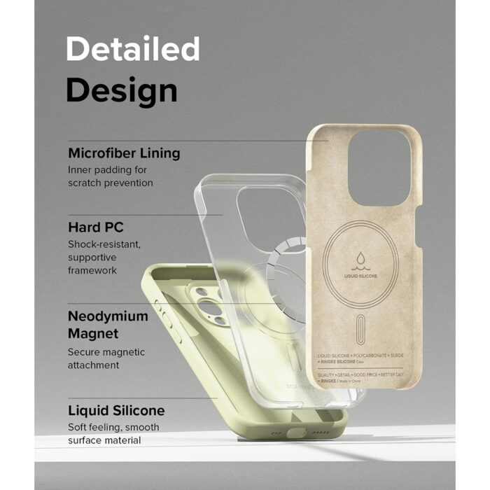 - ดีไซน์เคสแบบสี่ชั้น วัสดุซิลิโคนระดับพรีเมียม กรอบโพลีคาร์บอเนตที่ทนทาน วงแหวนแม่เหล็กนีโอไดเมียม และซับในไมโครไฟเบอร์เนื้อนุ่ม