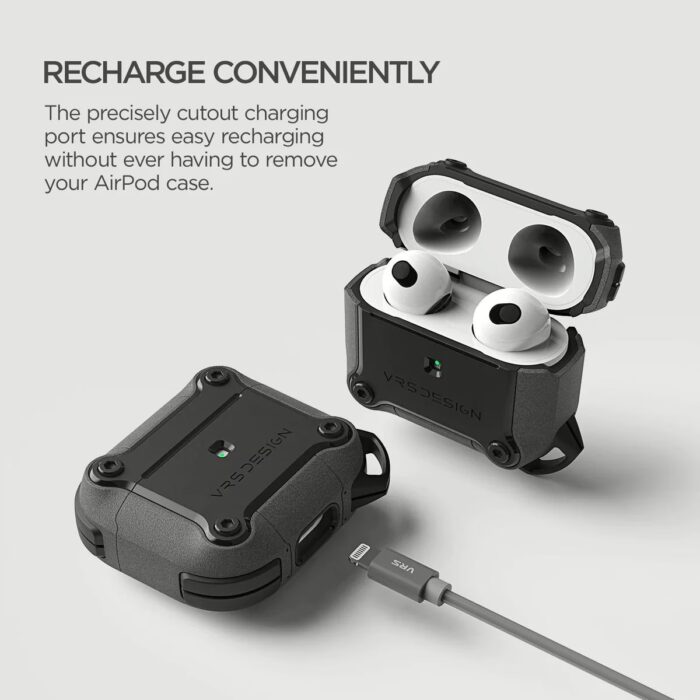 VRS รุ่น Active ออกแบบมาได้อย่างลงตัว มีการตัดฟีเจอร์ต่างๆที่ไม่จำเป็นเพื่อโฟกัสกับการปกป้อง Airpods 3 อย่างดีที่สุด และมีตัวห่วงแถมมาให้เพื่อการพกพาที่สะดวกสบายในแต่ละวัน
