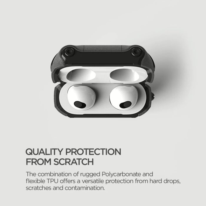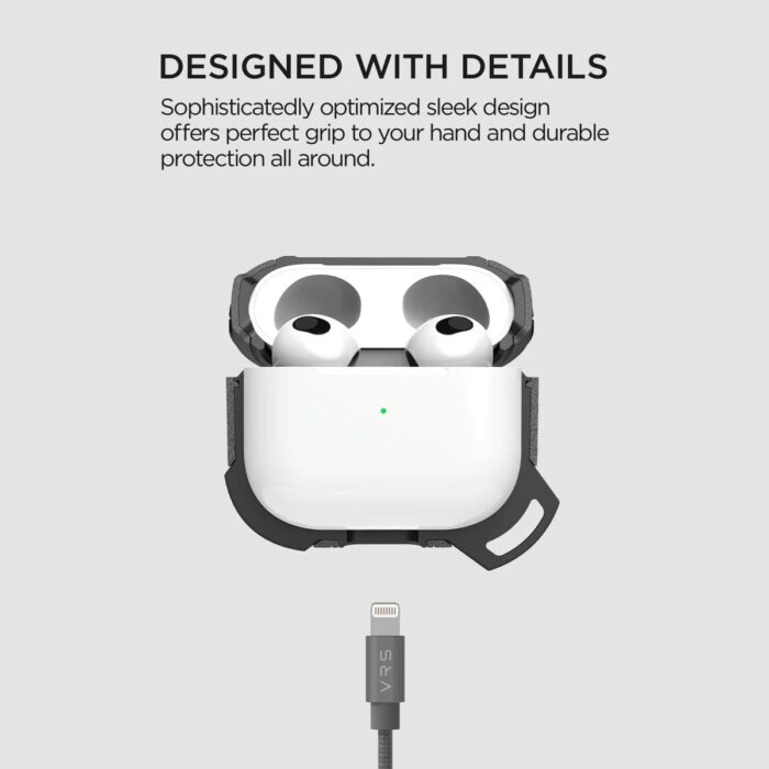 เคสกันกระแทก VRS รุ่น Active สำหรับ Airpods 3 ด้วยการผสมผสานของวัสดุระหว่าง โพลีคาร์บอเนตที่ทนทาน และ TPU ที่ยืดหยุ่น จึงช่วยป้องกันแรงกระแทกและรอยขีดข่วนได้อย่างดี