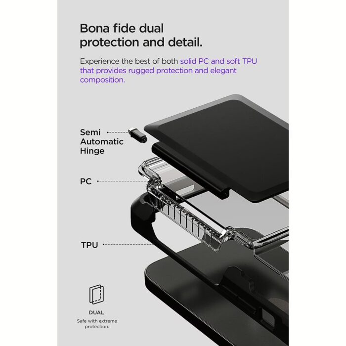 - ตัวเคสมีขอบเคสเป็น TPU และฝาหลังและฝาพับปิดช่องใส่บัตรเป็น PC ที่แข็งแรงทนทาน
