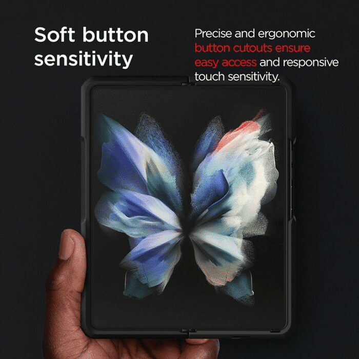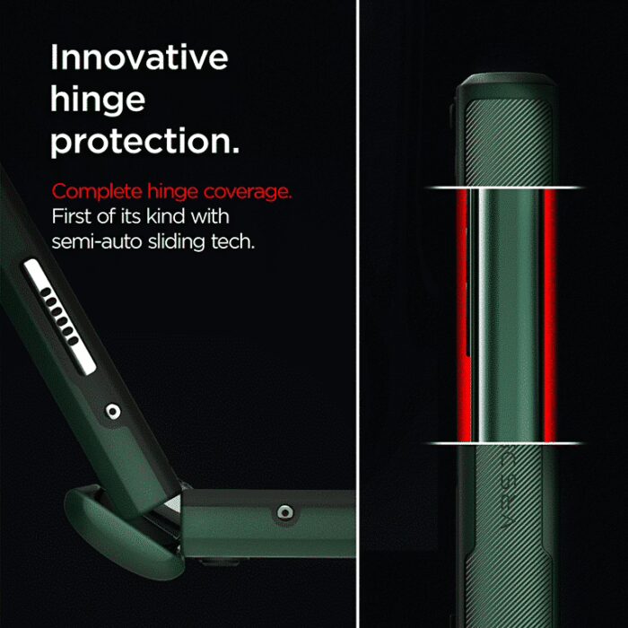 ตัวเคสมาพร้อมการปกป้องได้อย่างรอบด้านด้วยขอบที่ยกสูงทั้งด้านกล้องและหน้าจอช่วยให้กันรอยขีดข่วนและรอยกระแทกได้เป็นอย่างดี ด้านบานพับมีการปกป้องที่สมบูรณ์แบบพร้อมเทคโนโลยีการเลื่อนแบบกึ่งอัตโนมัติ