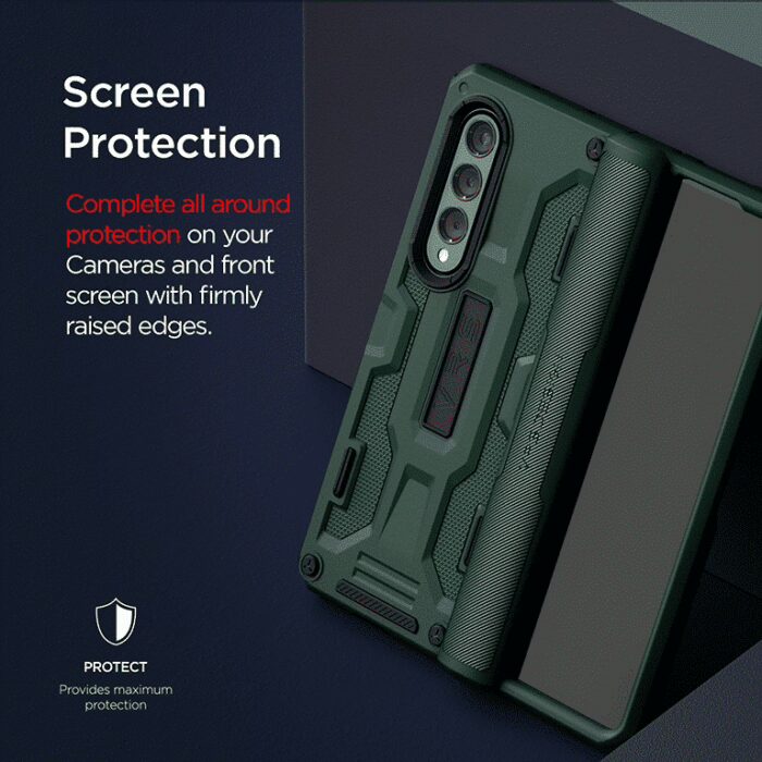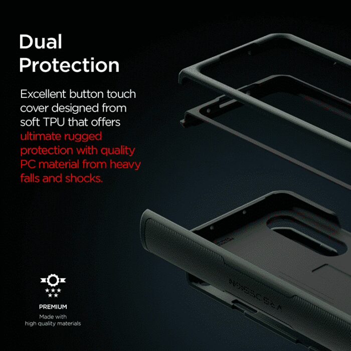 ปกป้อง Galaxy Z Fold 3 ของคุณได้รอบด้านด้วย VRS รุ่น Terra Guard Pro เคสกันกระแทกที่มาพร้อมวัสดุสุดแข็งแกร่งอย่าง Polycarbonate พลาสติกแข็งทนทาน ผสมผสานกับ TPU ยางที่อ่อนนุ่มช่วยดูดซับแรงกระแทกได้เป็นอย่างดี พร้อมผ่านการทดสอบแรงตกกระแทกที่ความสูง 4 ฟุตได้ถึง 26 ครั้ง มั่นใจได้ว่า Galaxy Z Fold 3 จะถูกปกป้องอย่างดีที่สุด