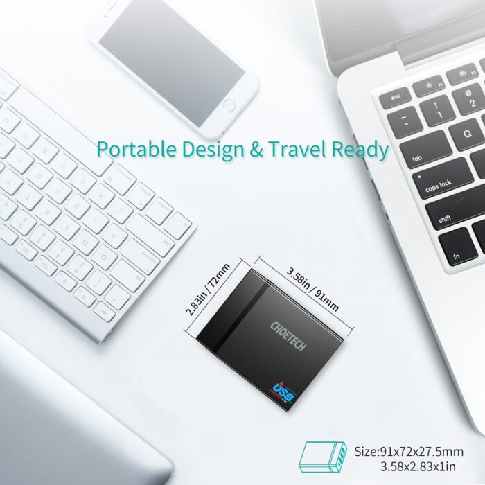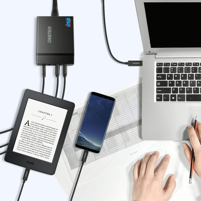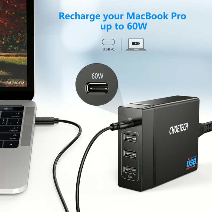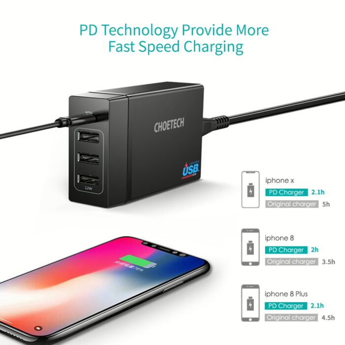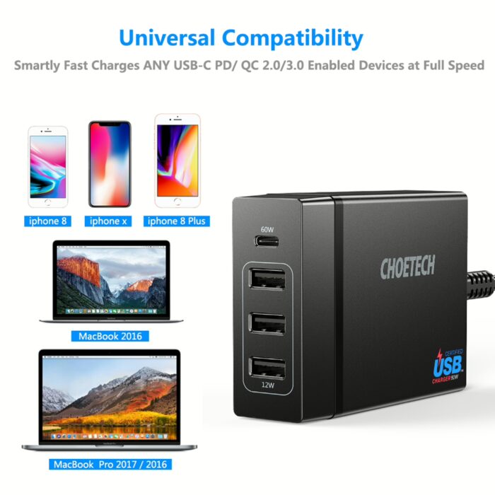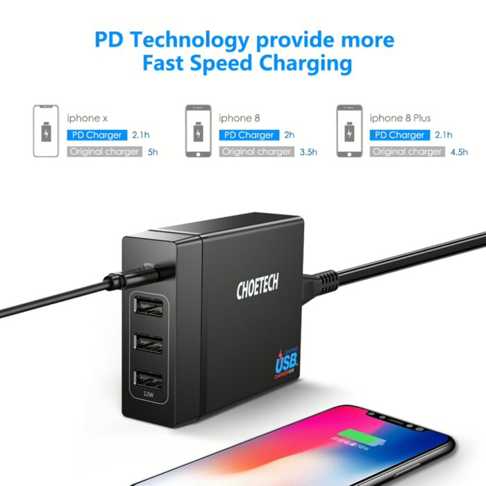 หัวชาร์จ Choetech รุ่น 4-Port Desktop Charger PD72W และสาย 1.5m US Power Cord (PD72-1C3U) – สีดำ