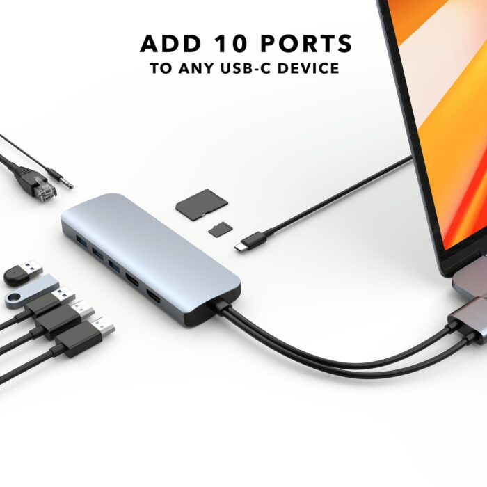 - อุปกรณ์เชื่อมต่อใช้งานกับ MacBook Pro และ MacBook Air มาพร้อมกับ 8 พอร์ต เพิ่มความสะดวกสบายในการใช้งาน MacBook ของคุณ