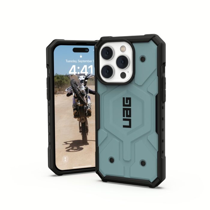UAG Pathfinder MagSafe เคสกันกระแทกสุด Slim ออกแบบมาเพื่อคนที่รักในกิจกรรมแอดเวนเจอร์ ด้วยดีไซน์สุดเท่และลวดลายใหม่ที่เป็นเอกลักษณ์ต่างจากตัวเก่า มั่นใจด้วยการกันกระแทกถึง 2 ชั้น กันกระแทกสูงสุดถึง 5.4 เมตร ผ่านมาตรฐานการทดสอบ MIL STD 810G-516.6 ถือง่ายไม่หลุดมือง่าย มาพร้อมกับแม่เหล็กในตัว ทำให้ใช้งานกับ MagSafe ได้อย่างง่าย ติดแน่นไม่มีหลุด
