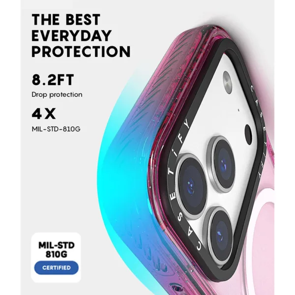 - เทคโนโลยี EcoShock™ คิดค้นโดย Casetify ขอบเกลียวที่ในขอบเคส ช่วยดูดซับและกระจายแรงกระแทกรอบตัวเครื่อง