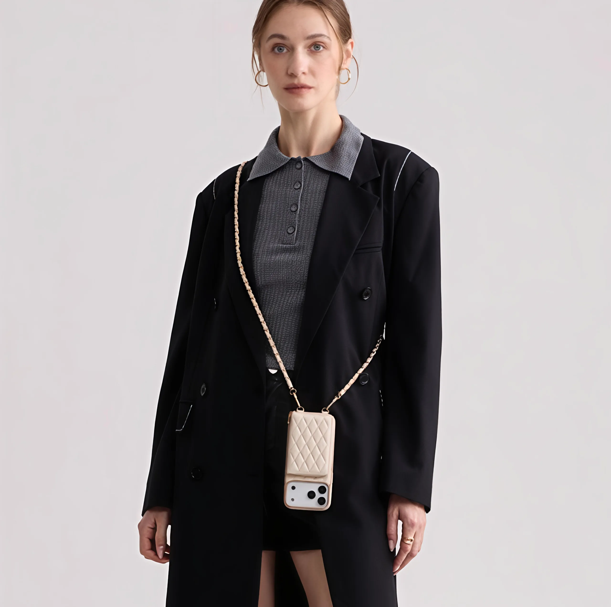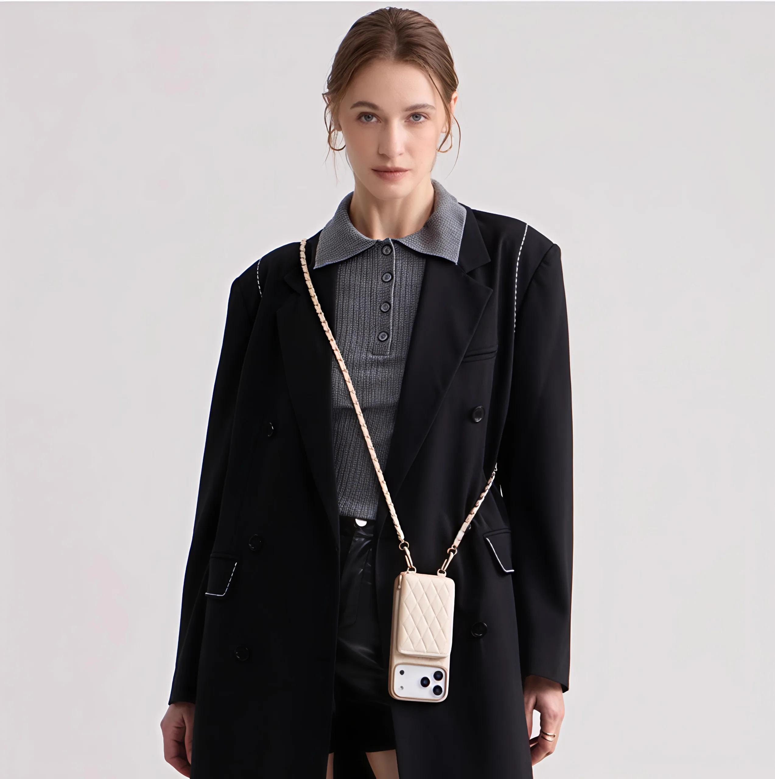 Custype Argyle Phone Case with Chain Leather Strap คือเคสมือถือดีไซน์พรีเมียมที่ผสาน ลายถัก Argyle แบบสามเหลี่ยม ให้ลุคแฟชั่นเฉียบ พร้อมสายคล้องหนังปรับได้ ที่ให้คุณจับหรือสะพายมือถือแบบแฮนด์ฟรีได้อย่างมั่นใจ ไม่ว่าจะเป็นการเดินทางไปเที่ยว คาเฟ่ นัดเจอเพื่อน หรือเดินชิลในเมือง เคสนี้ตอบโจทย์ ทั้งสไตล์และฟังก์ชัน ในหนึ่งเดียว