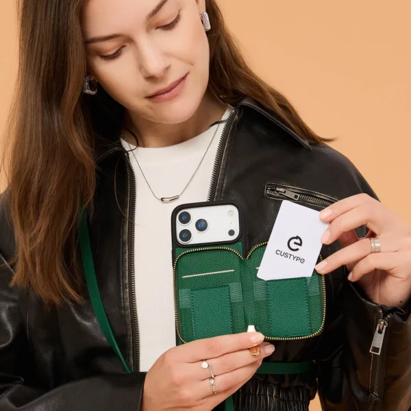 Custype รุ่น Leather Case with Stand & Round Pouch – เคส iPhone 17 Pro Max – สี Green