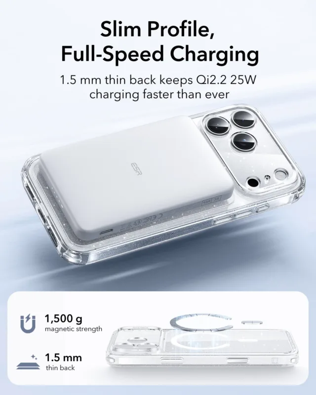 - รองรับการชาร์จมาตรฐานใหม่ Qi2.2 Fast Charge ให้กำลังชาร์จสูงสุดถึง 25W ใช้งานร่วมกับแท่นชาร์จรุ่นล่าสุดได้เต็มประสิทธิภาพ