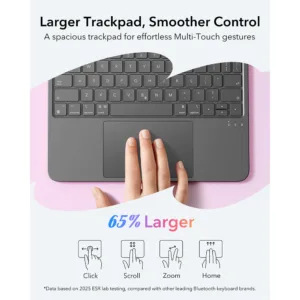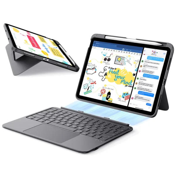 - คีย์บอร์ดแม่เหล็กแบบ Detachable พร้อม Trackpad ที่สามารถถอดออกได้เมื่อต้องการใช้ iPad แบบแท็บเล็ต พร้อมทัชแพดควบคุมเคอร์เซอร์ได้เหมือนแล็ปท็อป