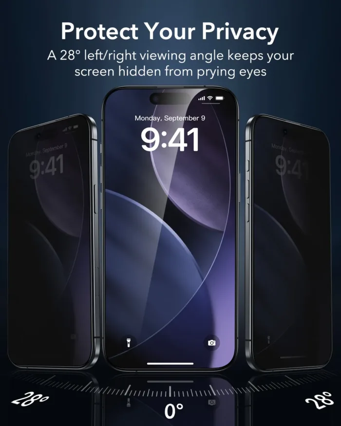 UltraFit Armorite Privacy Screen Protector กระจกกันรอยเกรดสูงสุดที่สร้างมาเพื่อ iPhone ใช้กระจก Armorite Tempered Glass แข็งแรงกว่ากระจกทั่วไปหลายเท่า และผ่านการทดสอบจริงด้วย ลูกตุ้มเหล็กตกกระแทกจากความสูง 1.7 เมตร ให้มั่นใจว่าปกป้องหน้าจอได้ในสถานการณ์ที่เลวร้ายที่สุด เป็นกระจก Pivacy ที่มีการป้องกันการมองทั้งด้าน ซ้ายและขวาที่ 28° เพื่อป้องกันความเป็นส่วนตัว มาพร้อม UltraFit Tray สำหรับการติดตั้งที่ง่าย เนียน และไร้ฟองอากาศ