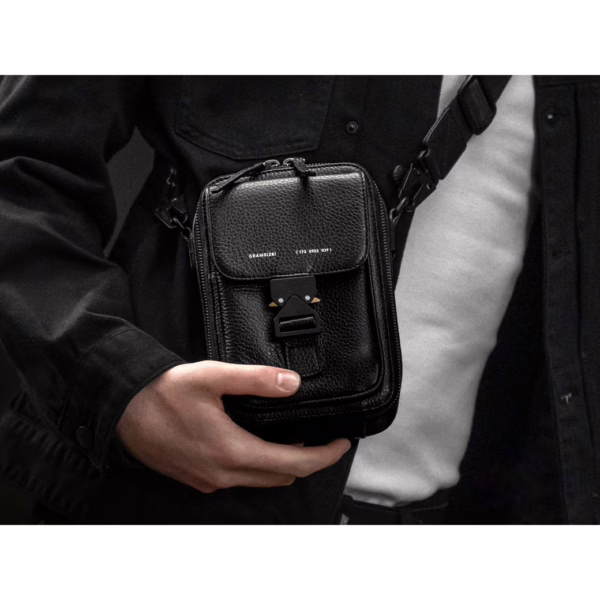 GRAMS(28) รุ่น 173 Vertical Sling (Pebbled Leather) – กระเป๋า – สี Black