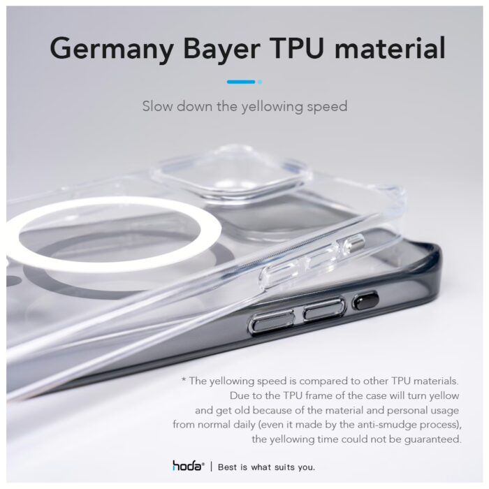- ขอบเคสทำจาก TPU (Germany Bayer TPU) ช่วยชะลอความเหลืองเมื่อเทียบกับวัสดุ TPU อื่นๆ